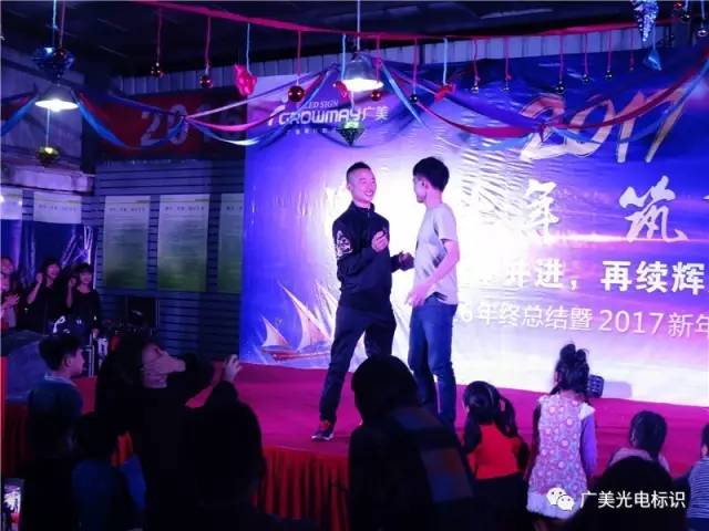 1月19日,广美标识在公司内部举行盛大的年终总结大会,本次大会的主题是”激扬十年,筑梦远航”,2017正是广美标识成立十年之际,因此,本次晚会也具有时代意义,出席本次大会的人员除了有本公司员工外,我们还特地邀请了众多广告同行伙伴参加,本次年会节目相当丰富,下面,我们一起跟随镜头来了解广美本次年会的盛况。