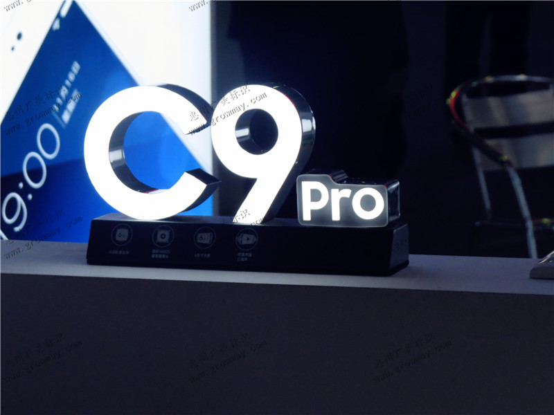 oppoR9s注塑座台发光标识及落地式展台发光字。