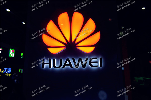 制作工艺:华为背发光标识的底板由激光雕刻机切割洗槽,与制作迷你字底盒一样,切口要做清洁处理,将尾料碎屑打磨干净,led灯带安装于底盒凹槽底部,水晶底板表面贴一层黑色亚克力面板,打光即可形成背发光效果。